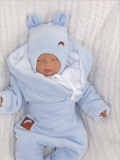 Kombinezon zimowy welurowy niemowlęcy błękitmy 68