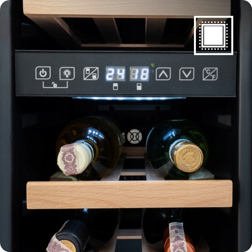 Odpowiednią dla danego szczepu wina temperaturę uzyskasz za pomocą precyzyjnego elektronicznego panelu sterowania. Zakres temperatur wynosi tutaj od 5 aż do 22°C.