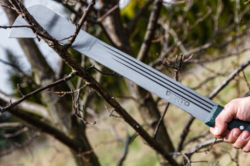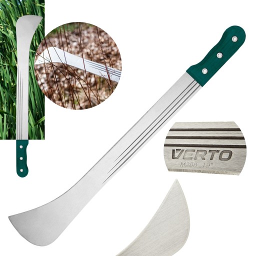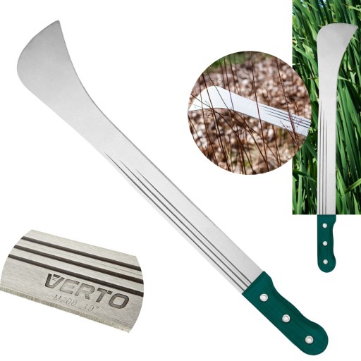Maczeta ogrodowa 19" 15G190 VERTO to przydatne narzędzie ogrodowe ze specjalistycznym ostrzem i długiej powierzchni cięcia. Maczeta posiada całkowitą długość 480 mm. Została wykonana z hartowanego, niezwykle wytrzymałego ostrza oraz drewnianego, ergonomicznego uchwytu, pewnie leżącego w dłoni. Rękojeść mocowana jest za pomocą nitów, dzięki czemu jego trwałość jest jeszcze większa. Z pomocą maczety można sprawnie wykarczować zarośla, podciąć krzewy lub drzewka oraz okrzesać gałęzie czy konary. Ogrodnicza marka VERTO oferuje narzędzia użyteczne na lata.