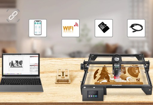 Grawerowanie i cięcie w trybie offline za pomoc kolorowego ekranu dotykowego 3,5 cala. Podczas grawerowania i cięcia nie jest potrzebne działanie z komputerem, dzięki obsłudze jest łatwiejsza w spełnieniu różnych wymagań dotyczących majsterkowania. Ekran dotykowy 3,5 cala jest dostępny zarówno w Ray5 5 W, jak i 10 W.