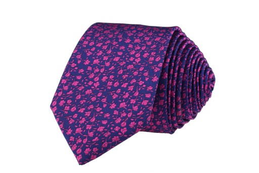 WĄSKI KRAWAT 6cm GRANATOWY W AMARANTOWE KWIATUSZKI
