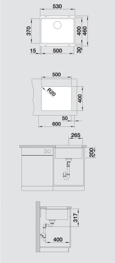МОЙКА ПОДСТАЛЬНАЯ BLANCO ETAGON 500-U АНТРАЦИТ + СИФОН