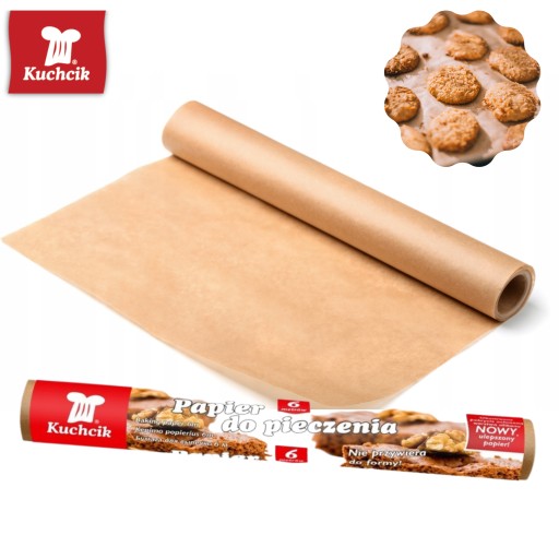 Papier do pieczenia Kuchcik wykonany z papieru pokrytego specjalną warstwą silikonu.