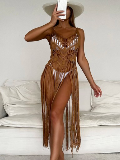 LETNIA TUNIKA PLAŻOWA ZWIEWNA SUKIENKA FRĘDZLE