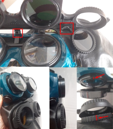 Wymiana szkieł przez odkręcenie zewnętrznych karbowanych pierścieni.