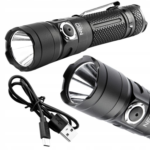 Latarka akumulatorowa USB C 1500 lm SST40 LED 99-075 NEO poręczne źródło światła, odporne na wstrząsy mechaniczne, wibracje czy zmiany temperatur, o mocy 10 W i 1500 lm. Ładowane na kabel USB typu C, dołączany do zestawu. Latarka działa w oparciu o akumulator litowo-jonowy 3,7 V 4000 mAh.