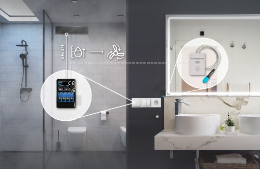 - W połączeniu ze sterownikiem switchBox LIGHT steruj wentylatorem w łazience lub kuchni aby pozbyć się nadmiaru pary i wilgotności