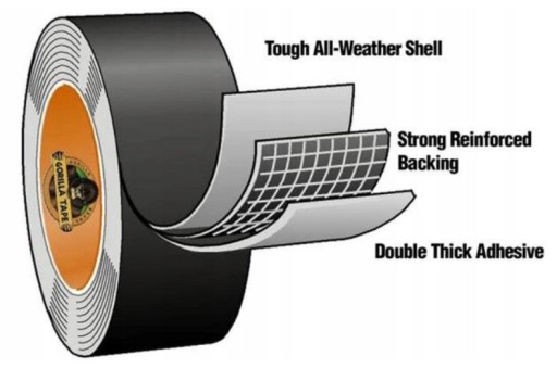 - ✅ Gorilla Tape jest wielowarstwową taśmą ze zwiększoną ilością mocnego środka klejącego z naturalnej gumy.