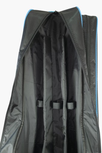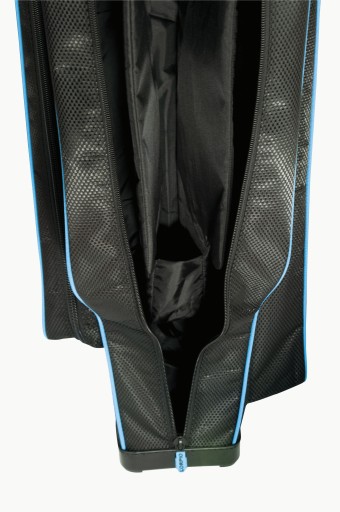 Dzięki specjalnie zaprojektowanej wewnętrznej przegrodzie pokrowiec mieści 3 uzbrojone wędki z kołowrotkami, zachowując szerokość standardowego pokrowca na 2 wędki.