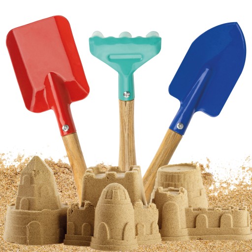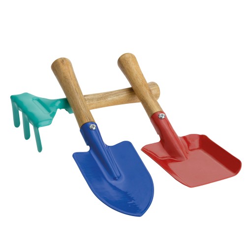 Zestaw składa się z trzech elementów – szpadla, łopaty i grabek, wykonanych z solidnego metalu, który zapewnia trwałość i wytrzymałość narzędzi. Dzięki ergonomicznym drewnianym rączką narzędzia są wygodne i łatwe do trzymania przez dzieci.