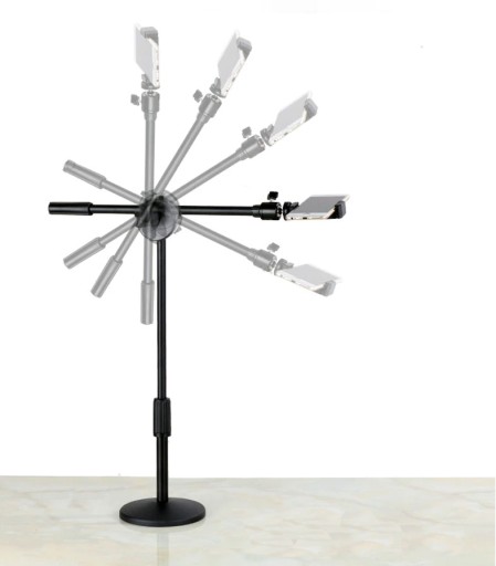 Oferowany w zestawie wysięgnik umożliwia robienie zdjęć od góry. Uchwyt możesz regulować w pionie i poziomie: zarówno wysokość statywu jak i położenie ramienia, co ułatwi Ci wyważenie całości.