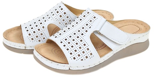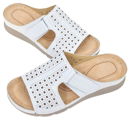 Białe Klapki Odkryte Rzepa Damskie Obuwie roz.39