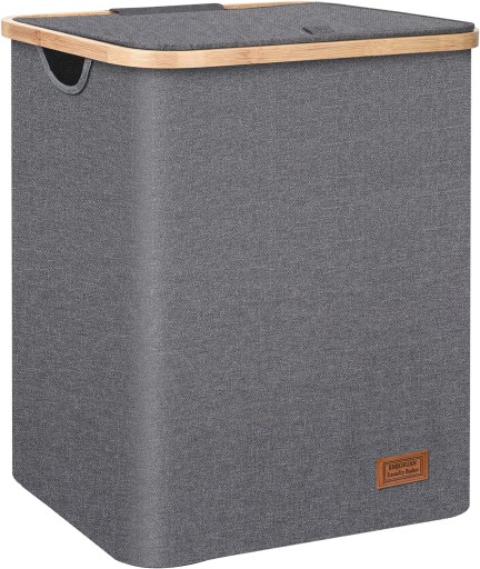 Kosz na pranie wykonany został z modnego połączenia bambusa i materiału w kolorze szarym. Wyjątkowo praktyczne i stylowe rozwiązanie. Idealny kosz do nowoczesnej łazienki.