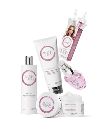 Rigena Lifting to rewitalizujący zabieg na włosy, przeznaczony do głębokiej odbudowy włókna włosów uszkodzonych przez agresję chemiczną lub mechaniczną.