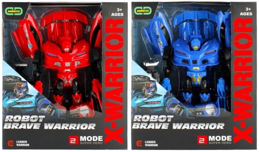 Zalety produktu: robota można za pomocą kilku ruchów zmienić w samochód, występuje w dwóch wersjach kolorystycznych: niebieski, czerwony. Robot i Auto w jednym? MEGA CREATIVE daje taką możliwość. Zabawa nigdy się nie znudzi, dzięki możliwości transformacji Robota w Samochód Zawartość zestawu: robot, dodatkowe akcesoria. Wymiary/waga/baterie: wymiary produktu dł. wys. x gł. cm :20x23x9, wymiar opakowania dł. x wys. x gł. Zabawka przeznaczona dla dzieci w wieku: 3 . Pakowany w kartonik z okienkiem. Pakowanie w kartonie po 30szt.