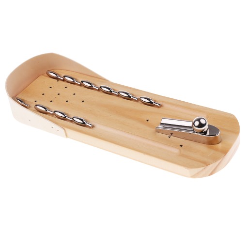 Spokojna drewniana podstawa, wysokiej jakości kręgle ze stali nierdzewnej, kulka ze stali nierdzewnej.