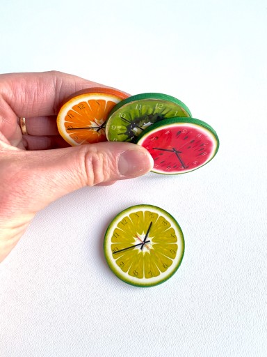 Миниатюрные часы для кукольного домика, фруктовые цвета.