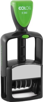 Przedmiotem jest datownik szkieletowy z płytką tekstową Colop S360 Office Line z poduszką dwukolorową nasączoną wybranymi tuszami