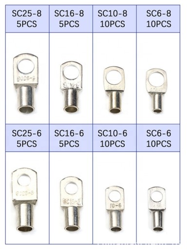 - 10 sztuk x zaciski SC6-8 (szerokość otworu na przewód 4,1mm, otwór na śrubę 8,5mm)