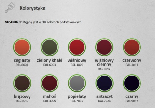 AKSIKOREM można również pomalować elementy stalowe (po ich uprzednim zagruntowaniu podkładem przeznaczonym do tego typu powierzchni), betonowe, tynki jeżeli występują w obiekcie budowlanym, a wymagane jest zachowanie kolorystyki budynku.