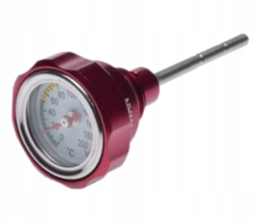 OPIS: KOREK OLEJU / BAGNET ZE WSKAŹNIKIEM TEMPERATURY. WYKONANY Z ALUMINIUM, ANODOWANY NA KOLOR CZERWONY. PRODUKT WYSOKIEJ JAKOŚCI.
