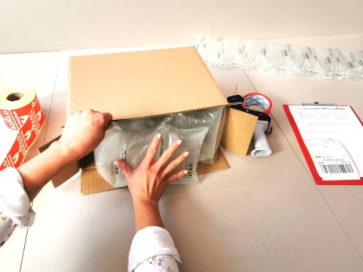 - Jako wypełniaczy używamy specjalnie pompowanych poduszek, które dodatkowo amortyzują zawartość paczki