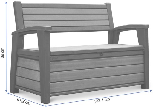 Ławka ogrodowa KETER Hudson 235688 ma funkcję schowka, dzięki któremu wszystkie zabawki Twojego dziecka, dodatkowe okrycia czy inne akcesoria ogrodowe mogą być schowane. Maksymalna ładowność ławki wynosi do 35 kg.