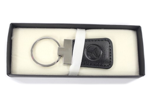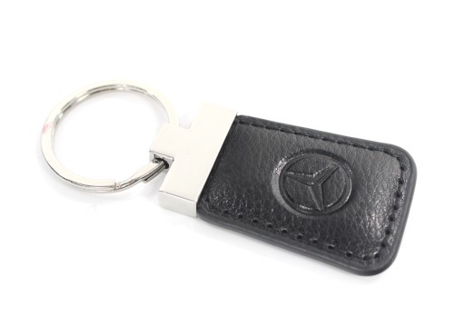 Wysokiej jakości brelok wykonany z metalu i skóry, z wytłoczonym logo marki Mercedes.
