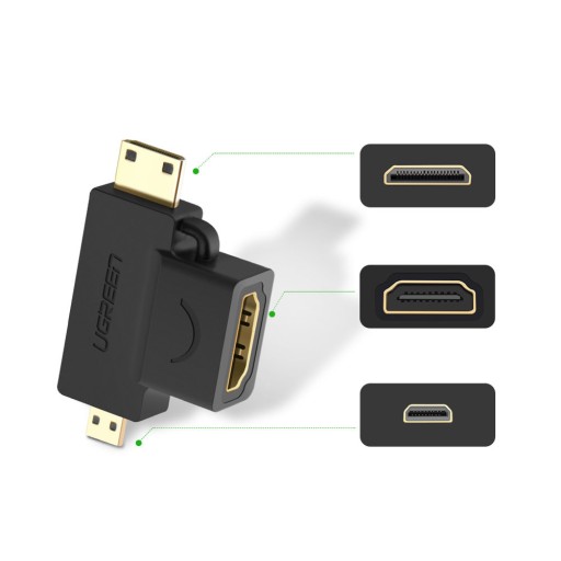 Ugreen przejściówka adapter ze złącza HDMI Typ A (żeński) na mini HDMI (męski) / micro HDMI (męski) czarny (20144)