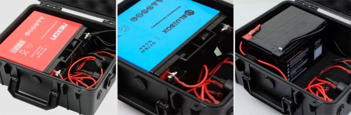 Wielofunkcyjna walizka - pojemnik na akumulator VRLA do transportu, bezpiecznego przechowywania i wygodnego stosowania akumulatorów VRLA; żelowych (GEL) i AGM | 6 V i 12 V | różnych pojemności (patrz : wymiary poniżej). Akumulator nie wchodzi w skład niniejszej oferty.