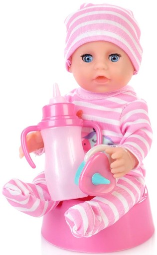 ⭐ Lalka wyglądem przypomina uroczego niemowlaka. Oferowany bobas posiada kilka funkcji, które sprawiają, że zabawa staje się jeszcze bardziej realistyczna. Bobas pije, siusia, a także zamyka oczka! Zabawa z naszym bobaskiem przypomina opiekę nad prawdziwym dzieckiem. Lalka zachęca do przytulania i bawienia.