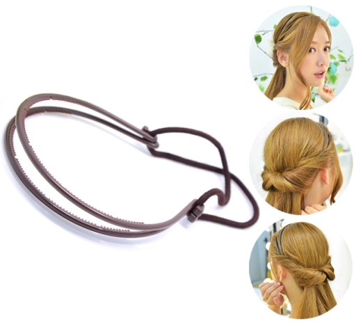 Opaski zakończone są haczykami, przez który zaczepiona jest elastyczna gumka. Opaski mają drobne ząbki, dobrze trzymają się głowy. Po wybraniu odpowiedniego miejsca na głowie przełóż tylne włosy o gumkę, powtarzaj do momentu zawinięcia wszystkich włosów.