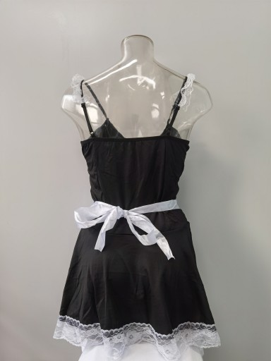 Seksowne przebranie niegrzecznej pokojówki bez wątpienia pobudzi wyobraźnię Twojego partnera. Kostium pokojówki wygląda obłędnie i kusząco. Spełnij najskrytsze marzenia swojego mężczyzny. W komplecie znajdziecie między innymi intrygującą Czarną sukienkę z fartuszkiem ozdobioną białą koronką, opaskę na głowę, białą koronkową podwiązkę, która może służyć także jako choker na szyję, dwie opaski na ręce oraz stringi. Całość dopracowana do perfekcji pod każdym względem.