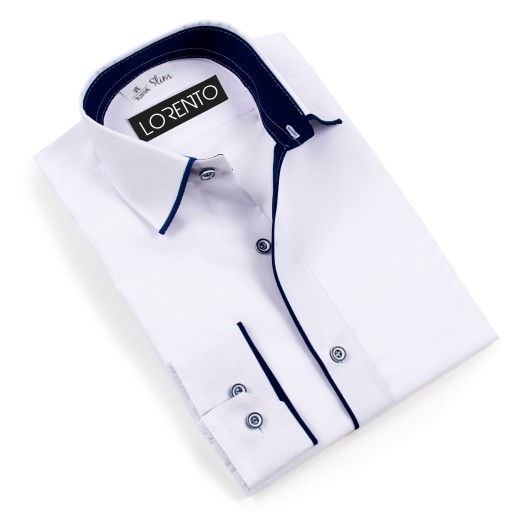 - Koszula SLIM mankiety, listwa i kołnierzyk z granatową lamówką