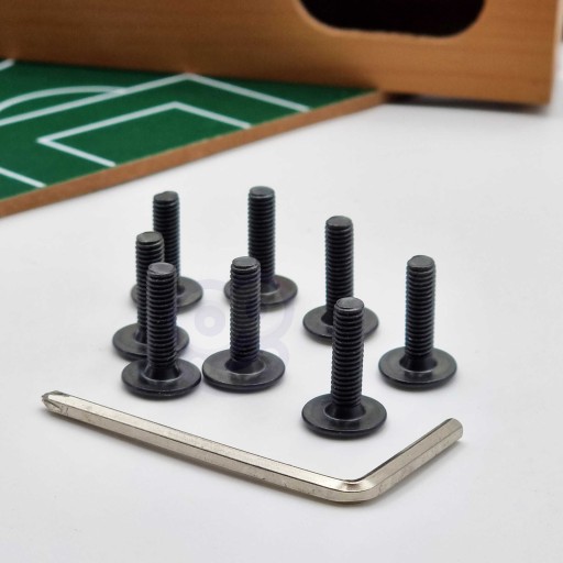- Ergonomicznymi uchwyt i rury, na których umieszczeni są piłkarze, z liczydłem do zaznaczania punktów, z piłeczką w zestawie,