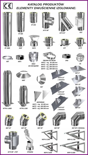 PAKIET KOMIN DWUŚCIENNY IZOLOWANY ZEWNĘTRZNY STALOWY KWASOODPORNY I ŻAROODPORNY fi 130 / 4 mb