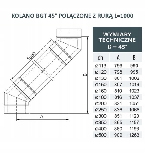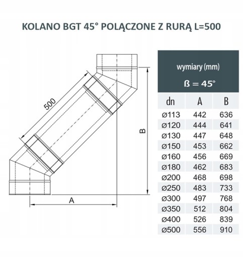 Z USKOKIEM ZAWIERAJĄCYM DWA KOLANA 45* I RURĄ ODPOWIEDNIEJ DŁUGOŚCI