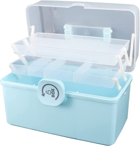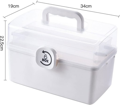 Wyposażony w trzystopniowe przegródki, dzięki którym można łatwo i bezpiecznie umieścić leki, zestawy pierwszej pomocy, takie jak plastry, opatrunki, taśmy, kremy i wiele innych.