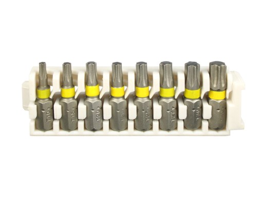 - końcówki typu TORX: T10, T15, T20, T20, T25, T27, T30, T40 – 8 sztuk