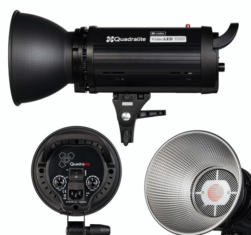 Quadralite VideoLED 1000 Bi-Color, jest lampą światła ciągłego, mającą moc 100W co pozwala na użycie jej zarówno w fotografii jak i filmie. Posiada regulację temperatury barwowej, w zakresie 3200K od 5600K. Posiada mocowanie typu Bowens co umożliwia wykorzystanie z nią szerokiego wachlarza dostępnych modyfikatorów.