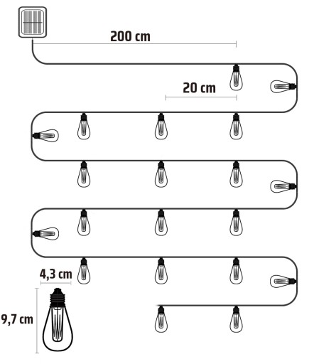 Girlanda świetlna 20 LED - Ogrodowa lampa solarna - żarówki