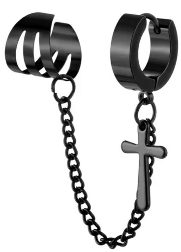 Крест-пусет для ушей с цепочкой в стиле панк STEEL