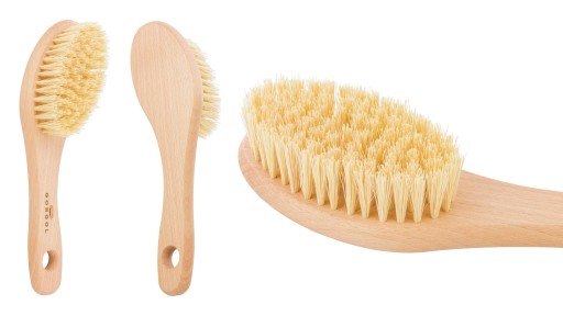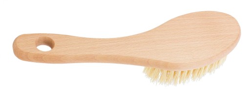 Szczotka duża w kształcie owalnym z rączką w kształcie"bumerang", na końcu której znajduje się duży otwór z bawełnianym sznurem umożliwiającym zawieszenie szczotki na wieszaku. Wyprodukowana w całości w Polsce, korpus wykonany z drewna zabezpieczonego ekologiczna bejcą. "Włos" naturalny TAMPICO - włókna roślinne z kaktusa Agawy, umieszczone bezpośrednio w korpusie. Szczotka twarda, do codziennego mycia ciała, idealna ze względu na przedłużoną rączkę do mycia pleców. Dzięki swojej twardości wykonuje idealny masaż skóry pobudzając jej ukrwienie.