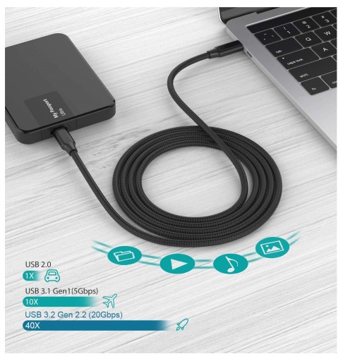 Prędkość transmisji danych do 20Gbps. Podłączając swoje urządzenie, jednocześnie można wymieniać pliki i ładować urządzenie z pełną mocą do 100W 5A.