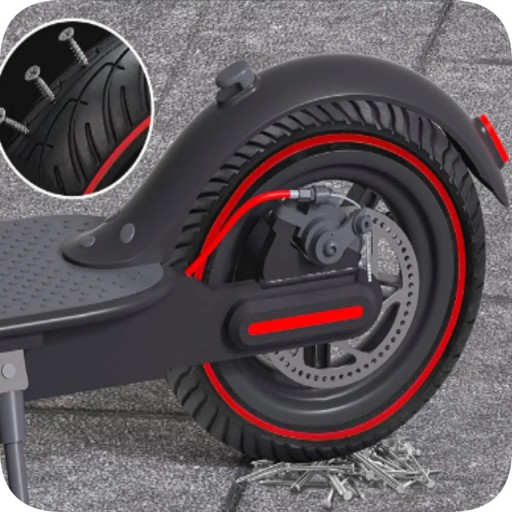 - Pełna, lekka, miękka opona do hulajnogi elektrycznej.
