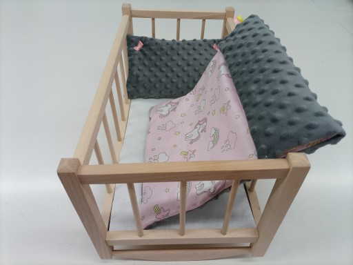 DREWNIANA KOŁYSKA DLA LALEK ORAZ POŚCIEL MINKY+ BAWEŁNA
