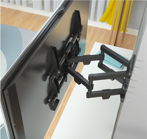 Uchwyt wygląda bardzo dobrze nawet gdy jest widoczny spoza telewizora co jest bardzo istotne jeśli uchwyt ma być zamontowany w sposób mocno wystający od ściany.