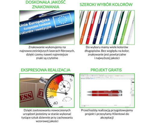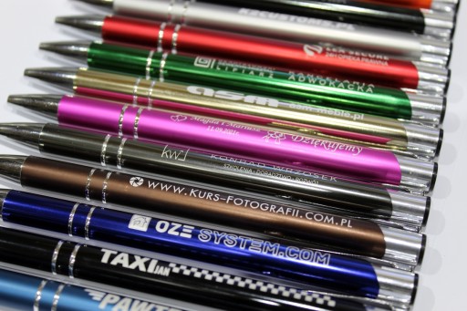 Na długopisach możemy wygrawerować dowolny tekst, grafikę, logo.