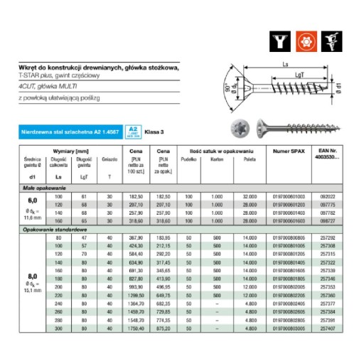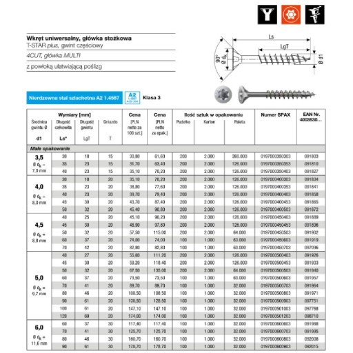 - Wkręty w wersji: Nierdzewna stal szlachetna A2 oferują wysoki poziom ochrony przed korozją.