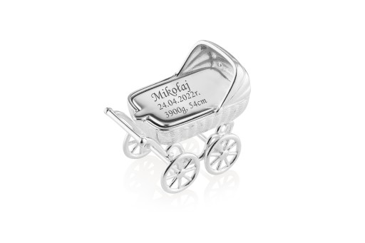Wózek pamiątka Srebrna 925 na Chrzest z GRAWEREM (produkt nr: 1011)